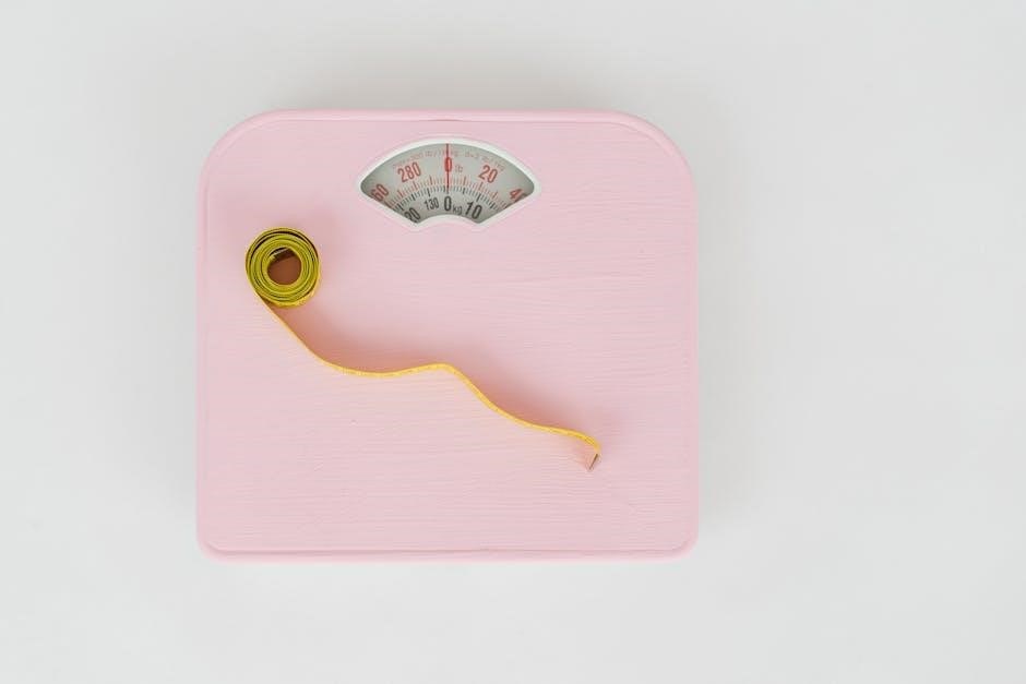 Do not stack heavy objects on top of the scale, as this could damage the sensors. If storing for an extended period, remove the batteries to prevent corrosion; Careful storage ensures your scale remains accurate and reliable for consistent weight tracking.